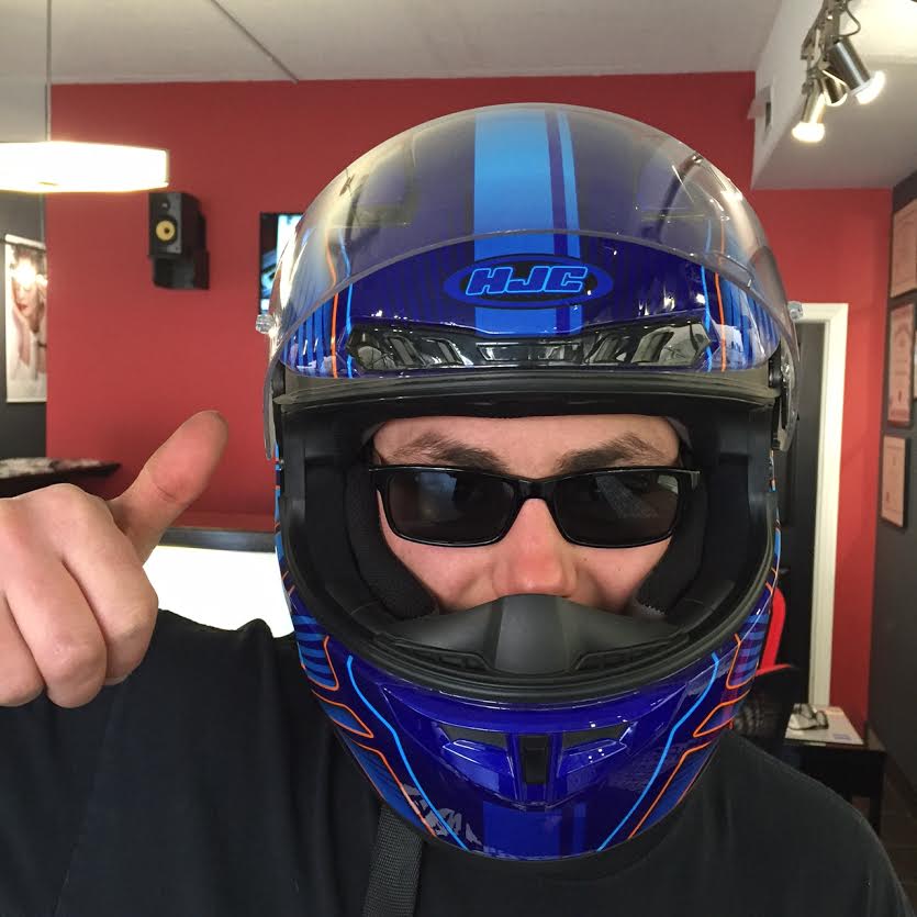 Blair is wearing his new Carrera prescription sunglasses. The lenses are impact resistant for when he has his shield up. They are also polarized for extreme glare reduction when driving into the sun. Blair is one of the drivers for Double Trouble Racing. We are very excited and can’t wait for racing season to start.